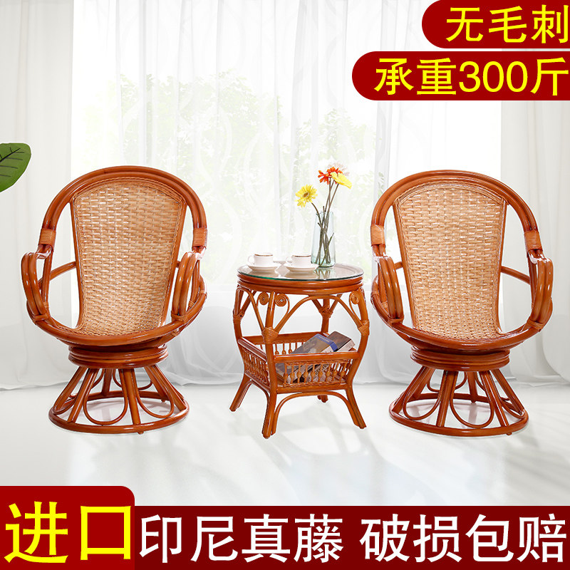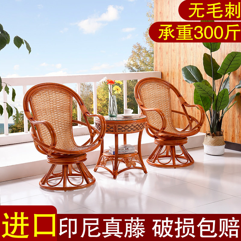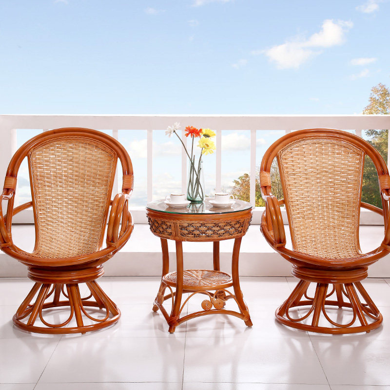 Balcony rattan chair three-piece set single backrest elderly chair coffee table combination natural bamboo woven Teng chair leisure home