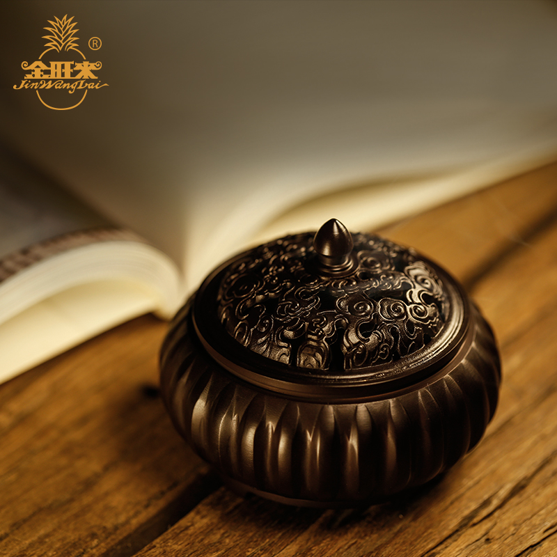 Jin Wanglai Pumpkin incense burner with drum belly Copper ring incense burner incense burner household incense road Zen ring incense burner