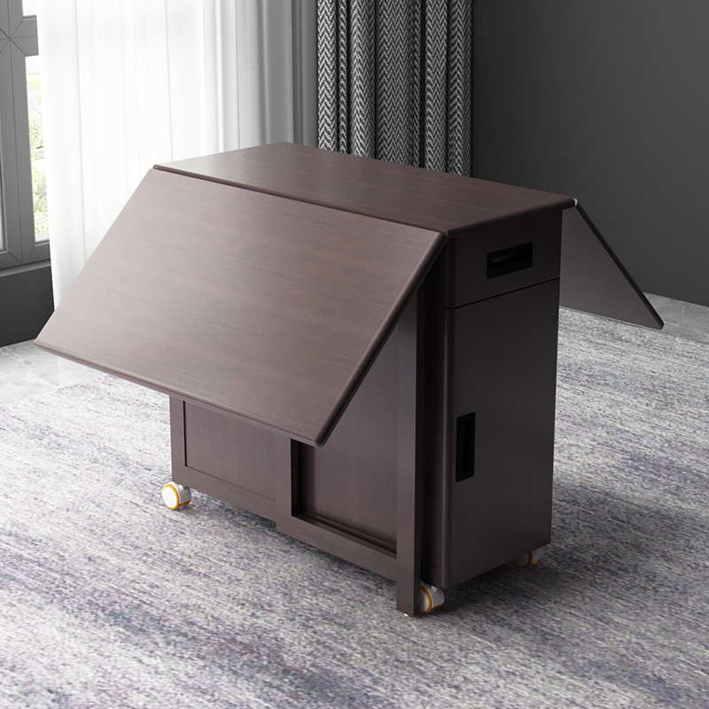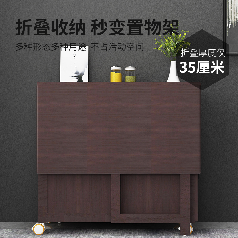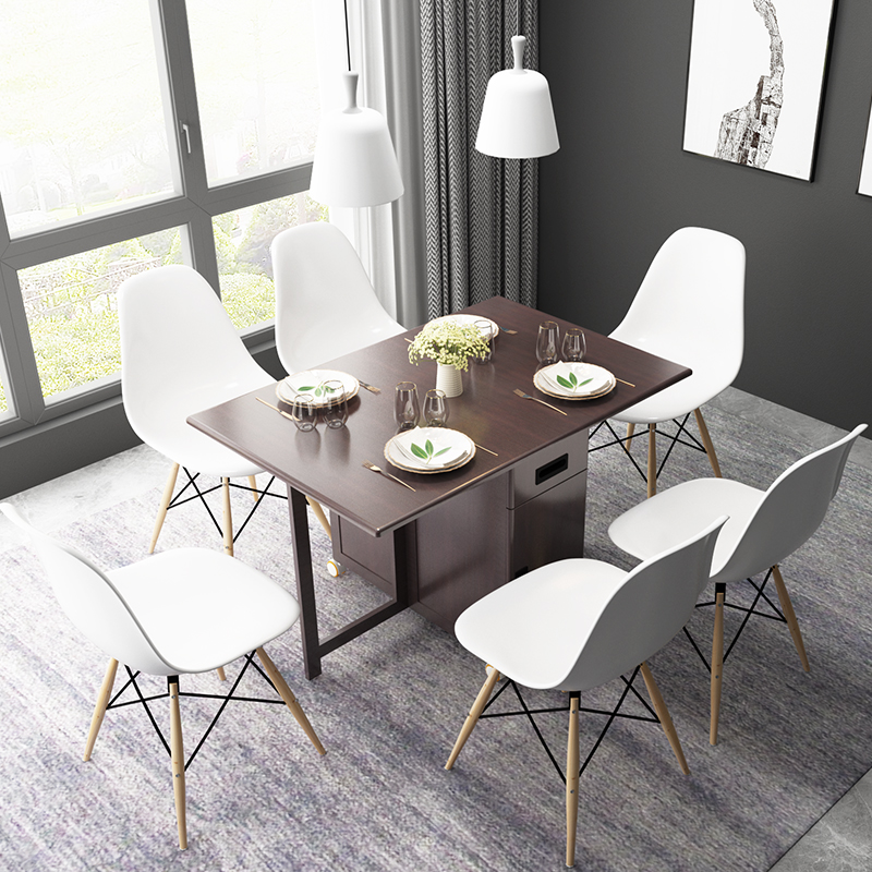 Folding movable dining table with wheels Small apartment 6 people Folding table and chair combination 4 people dining table Home modern and simple