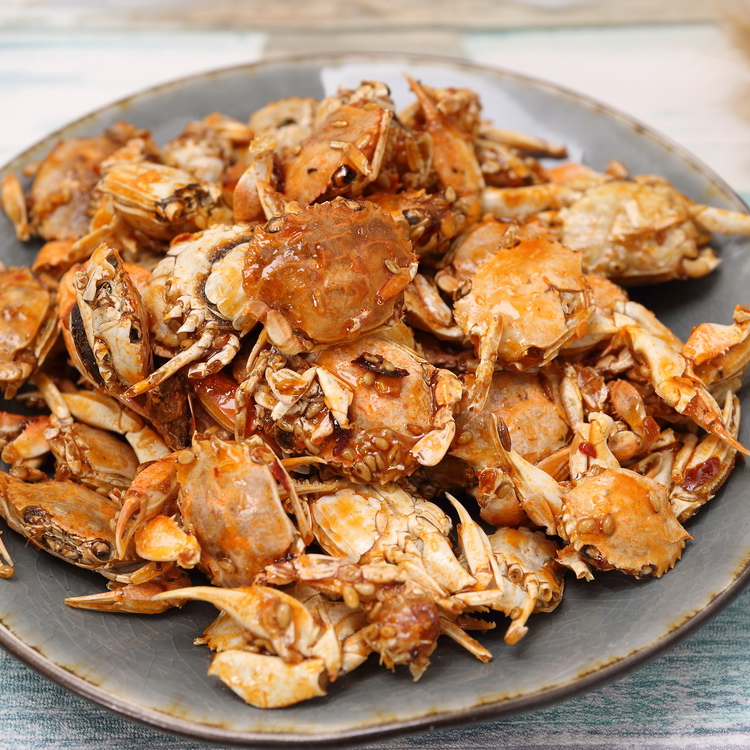 Braised sea crab, sea shrimp, whitebait, ready-to-eat small seafood snacks, cooked food snacks, appetizers, small hairy crabs, small crabs, river prawns