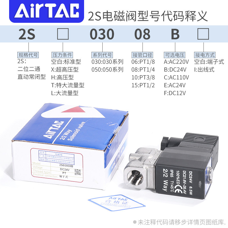 AirTAC Fluid Control Valve Solenoid Valve 304 Stainless Steel Water Valve 2S030 050-06 08 10 15A B