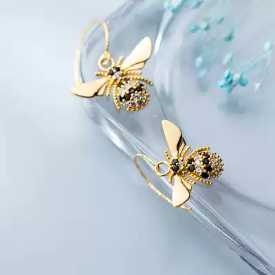 Love Rocky s925 Silver Earrings Female Korean hipster Diamond Golden Bee Sweet Animal Short Ear Hook Earrings