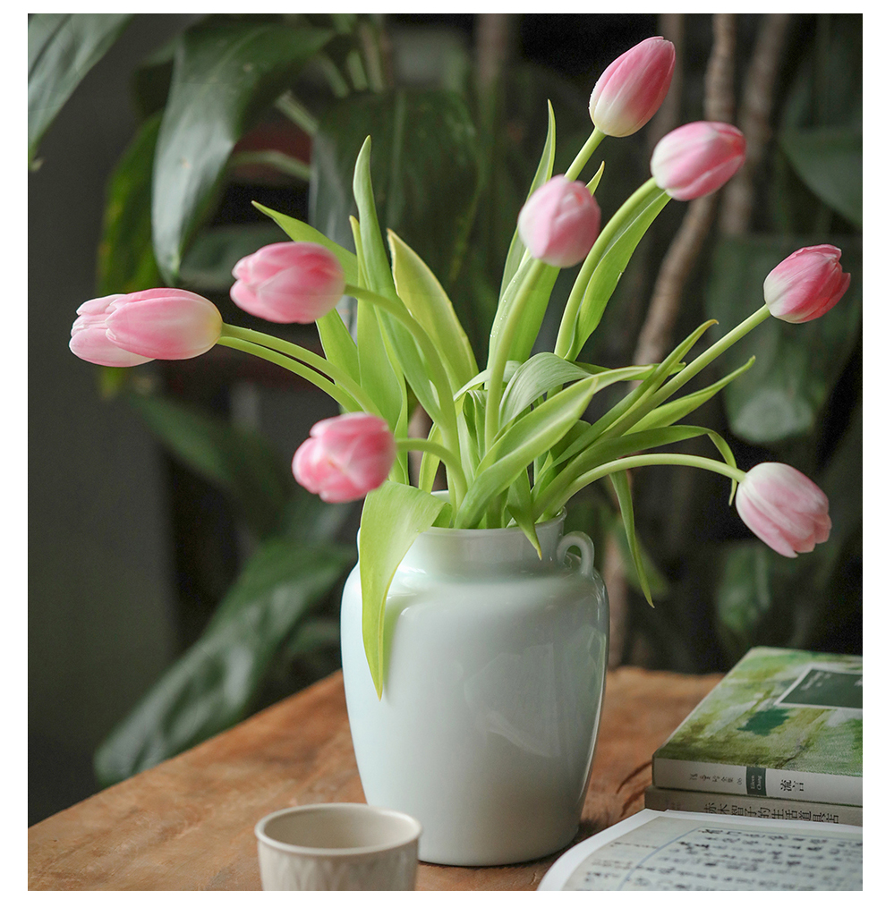 Green and white amphora vase shadow green ceramic new Chinese home ornament flower jar treasurer recommended leisure villa
