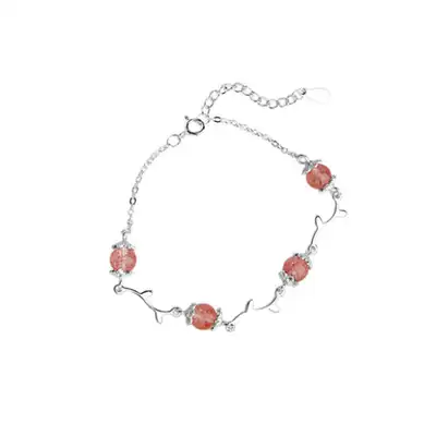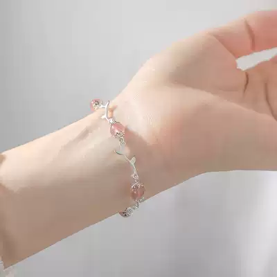 Flower branch Golden strawberry Crystal hand female sterling silver recruit peach flower crystal hand fresh hand string ins girlfriends gift