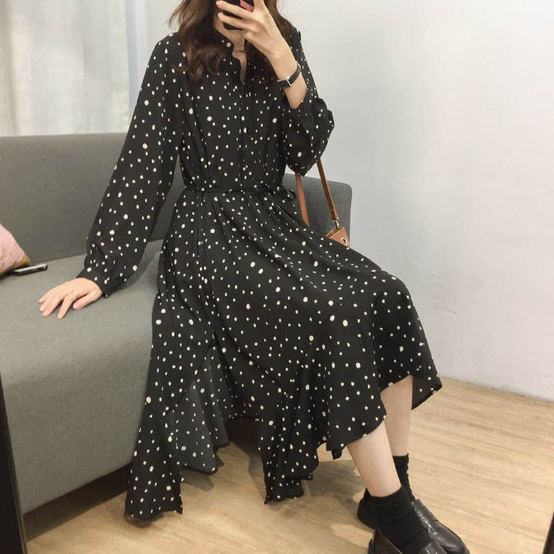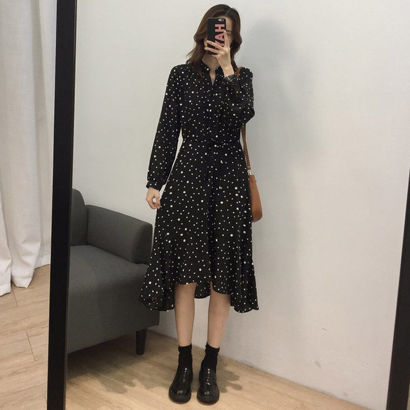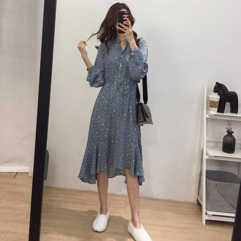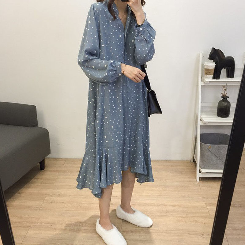 Large size women's autumn new fat MM cover belly dress loose Western style fat sister is thin two-piece suit to reduce age