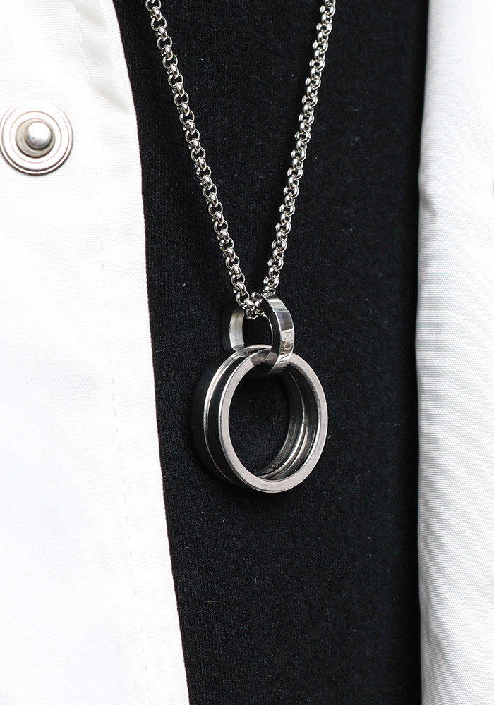 ROAD Original Design Double Ring Text Titanium Steel Love Jewelry Couple Necklace Men and Women Simple Hip Hop Commuting Sweater Chain