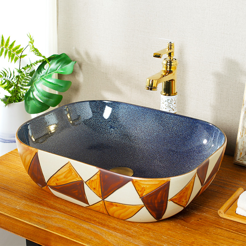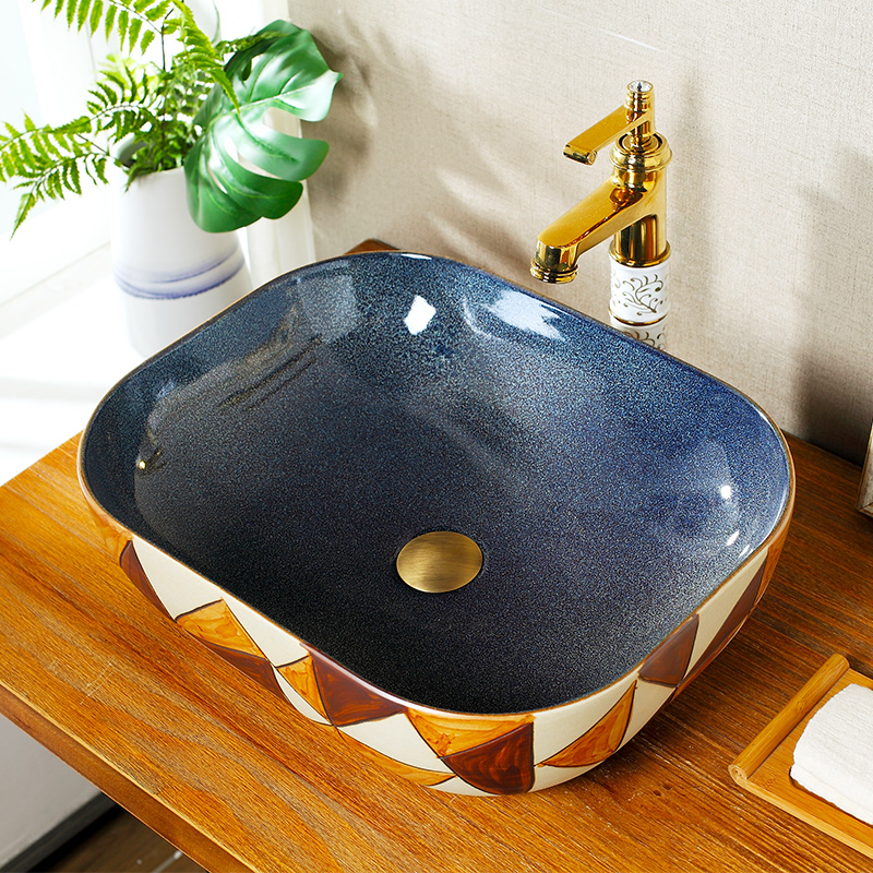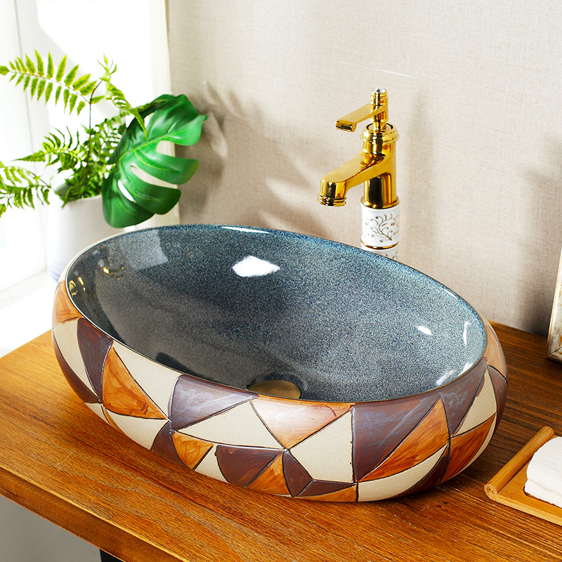 Countertop basin ceramic washbasin square Chinese art basin creative oval washbasin home wash basin