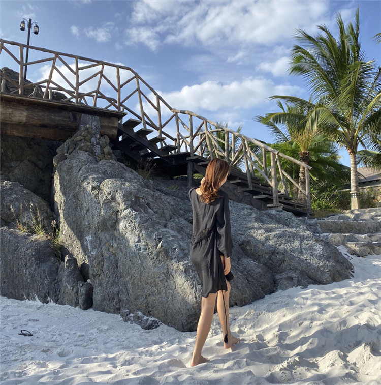 ins seaside holiday thin section bikini hooded spa swimsuit extra-virgin loose beach sunscreen jacket
