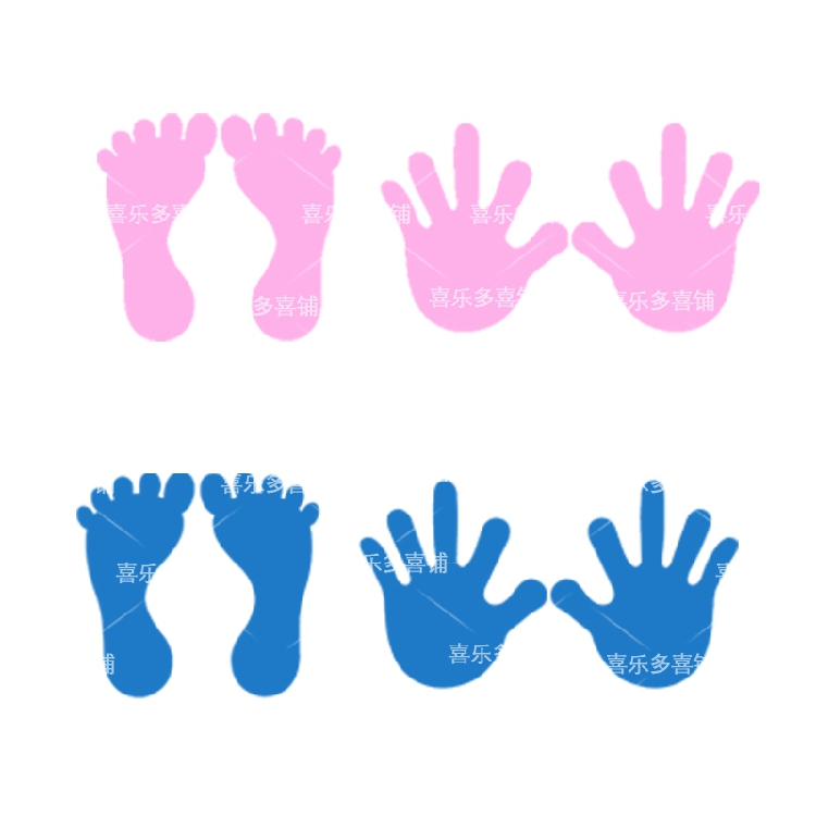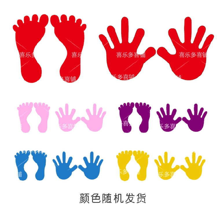 Footprints, a pair of handprints, a pair of footprints, a pair of footprints, 5 opponent prints, 5 pairs of footprints, 3 pairs of handprints