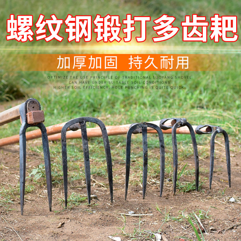 Forging agricultural tools four-tooth nail rake raking grass iron rake farm tools household flat ground turning soil loosening artifact rake