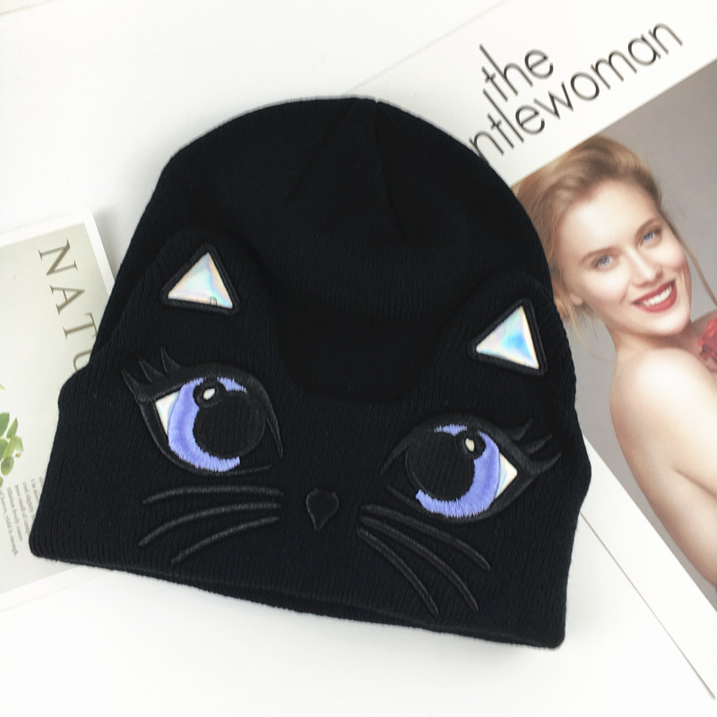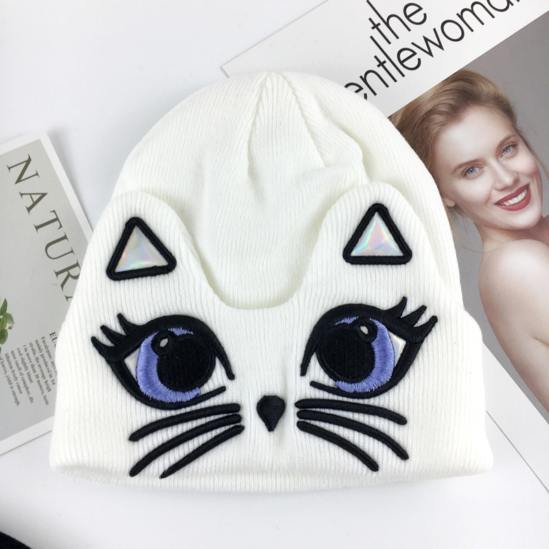 Single double board Ski Helmet Cute Cat ears wool line hat Japan-ROK version 100 lap embroidery knitted warm cover headcap-Taobao