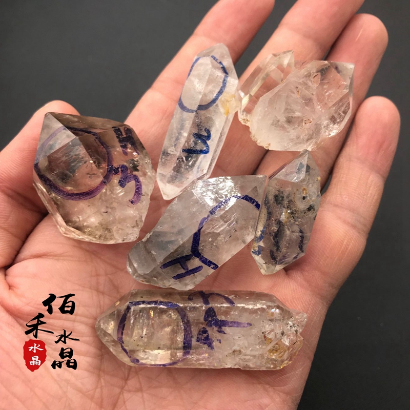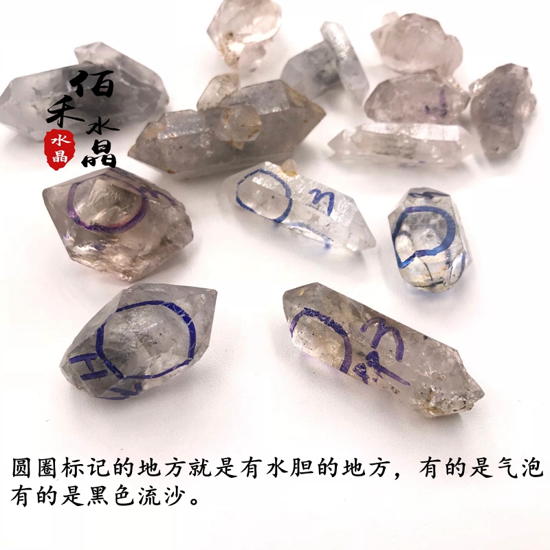 Natural white crystal hexagonal prism original stone pendulum with water bile flow sand mineral crystal sparkling drill Herkémon