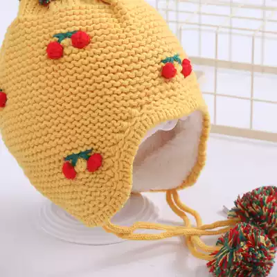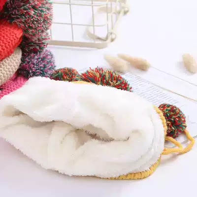 Autumn and winter children warm plus velvet hat girl ear protection knitted wool ball hat baby baby hat cute tide