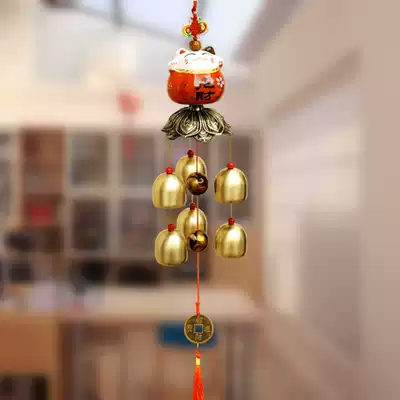 Japanese ceramic lucky cat shop opening wind chimes 6 bells 9 copper bell hanging ornaments door ornaments anti-theft Bell tips
