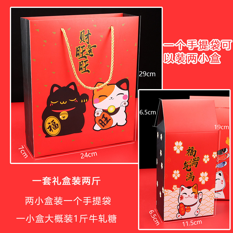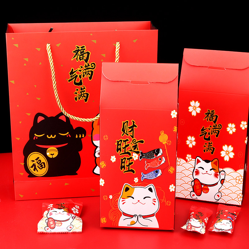Red carton 20 New Year tigers (10 each with good fortune) 10 handbags 10 gift boxes 50 self-supporting bags mixed with lucky cat red 50 bundle pockets New Year tigers 5
