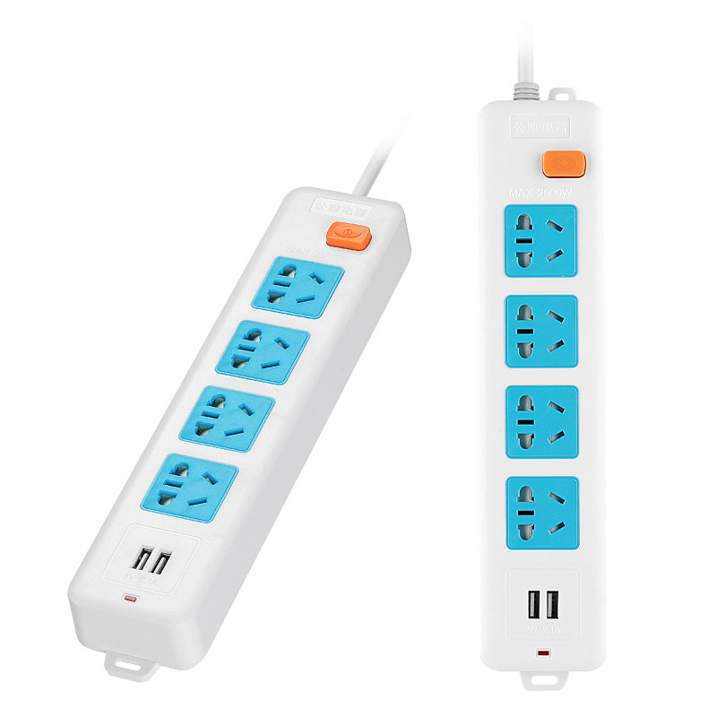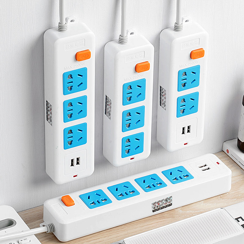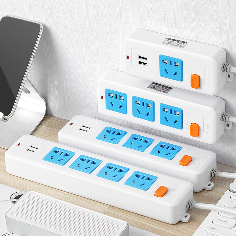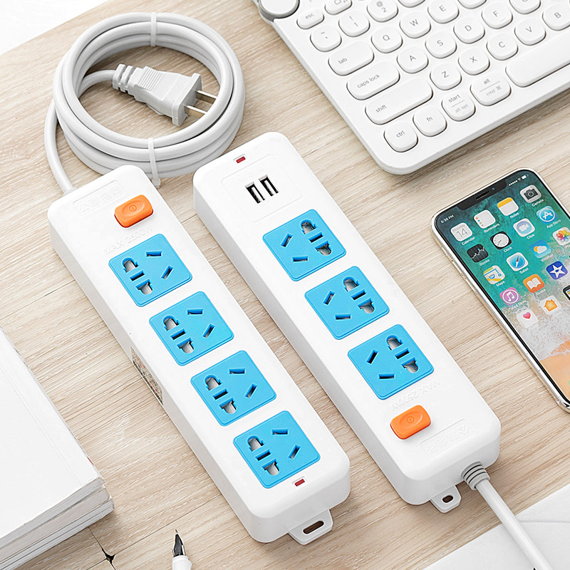 Bring your own 2 plugs Mini socket Home multifunction Two-item pin turn 3 holes row extension cord USB small plug-in line