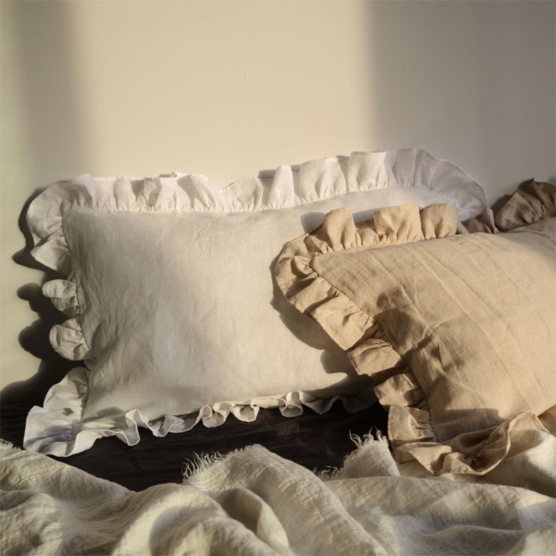 ins wind and air lotus leaf edge French linen pillowcase linen European and American washed soft and bacteriostatic skin-care single pillows