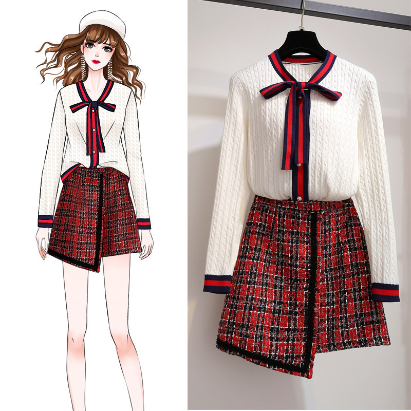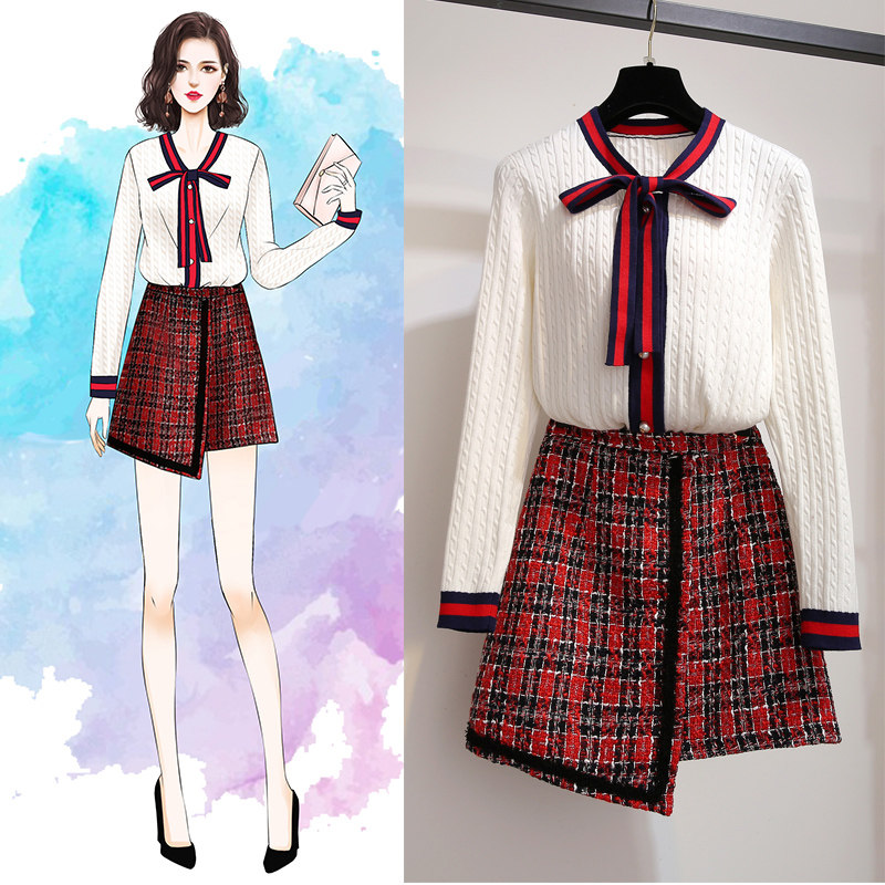 Small fragrant wind fried street suit with two sets of early autumn style temperament little sub wearing a light and cooked wind and a great sister butterfly tie the ocean pie