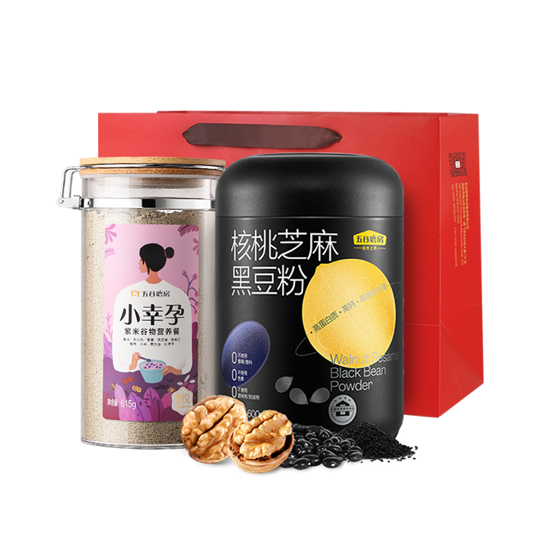 (Pregnant mother set) Grain Mill Smart pregnant mother gift bag Small lucky pregnant walnut black sesame powder Black bean powder
