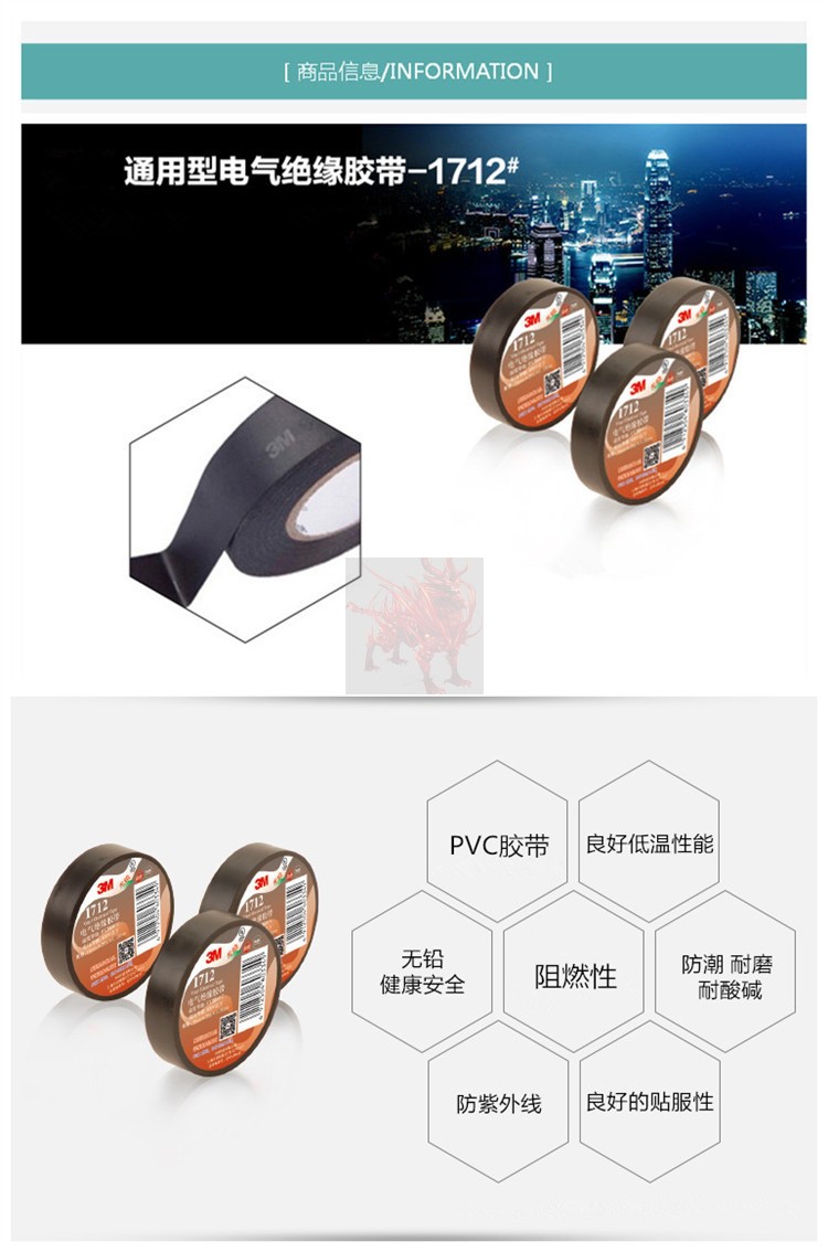 3M 3M 1712 lead-free electrical insulation adhesive tape acid-resistant adhesive tape 18MM* 0 18mm 18mm * 20m