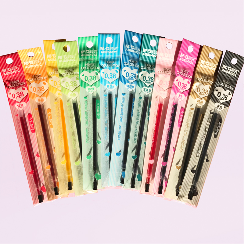 Morning light refill color 0 38mm black full needle tube 20 small boxed fresh male and female college students with water-based gel pen red blue for the core office stationery gel refill