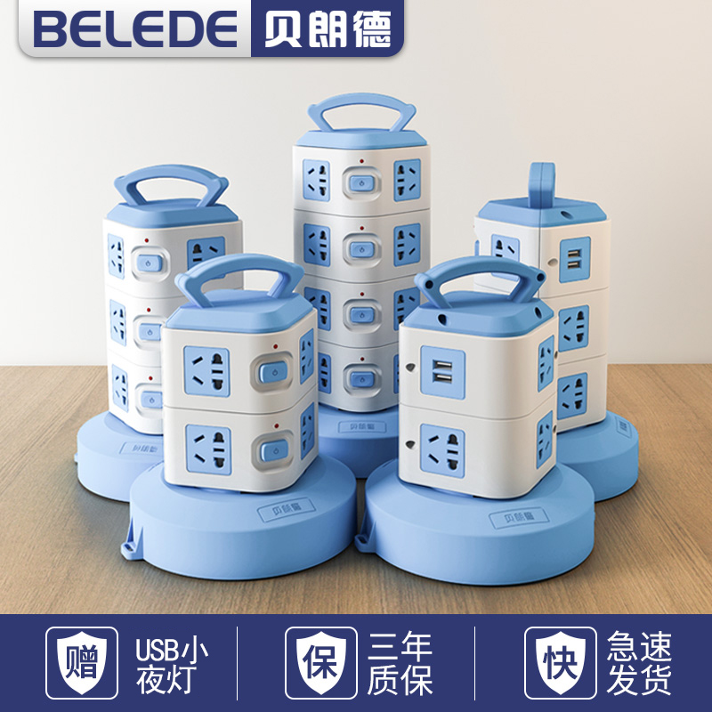 Belande multi-function vertical multi-row socket USB three-dimensional plug and socket wiring board Tower porous panel