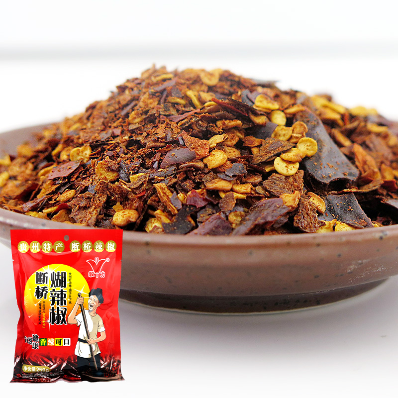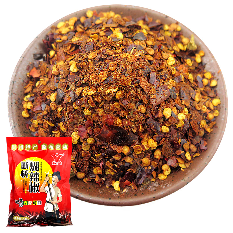 Guizhou Terrific rural girl's broken bridge burnt hot pepper noodles 250g * 5 packs of burnt sea pepper powder sea pretzels Dried Firewood hot pepper noodles