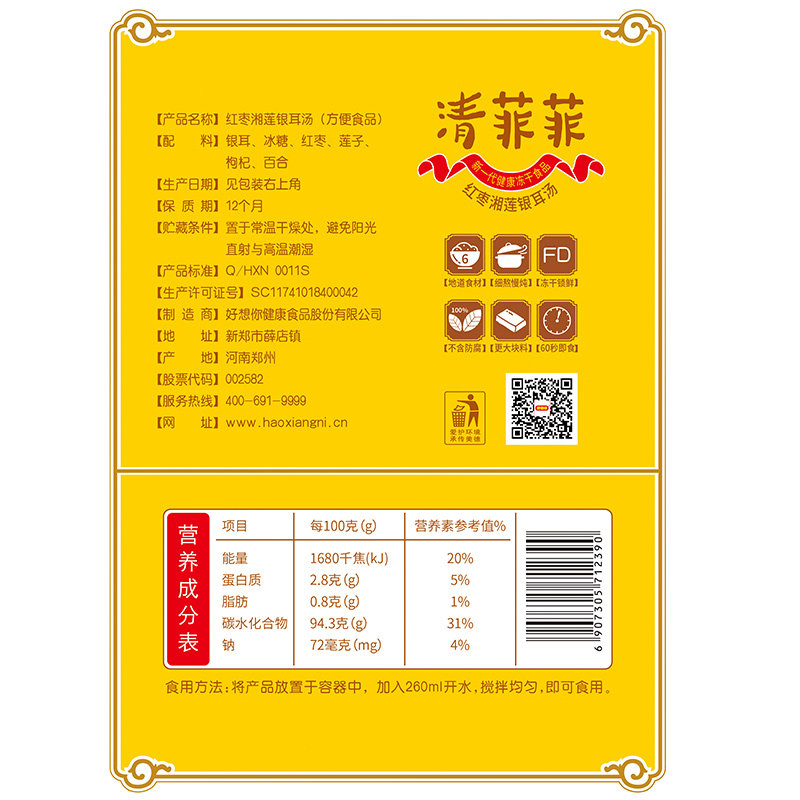 I miss you Qing Feifei 364g gift box gift freeze-dried red jujube white fungus lotus seed soup breakfast casual snack porridge