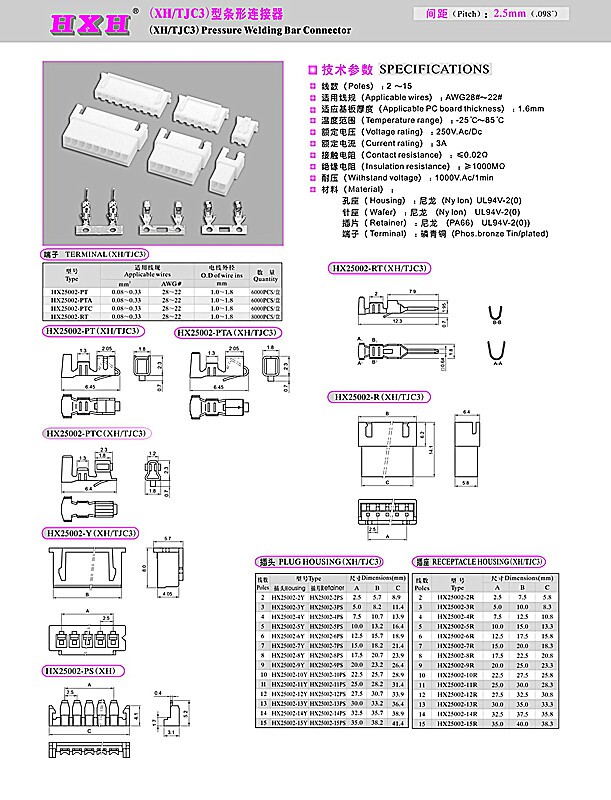 HXH Connector 25002 (XH TJC3) Connector Wire-to-Wire Link XH-RT One Disk 8K
