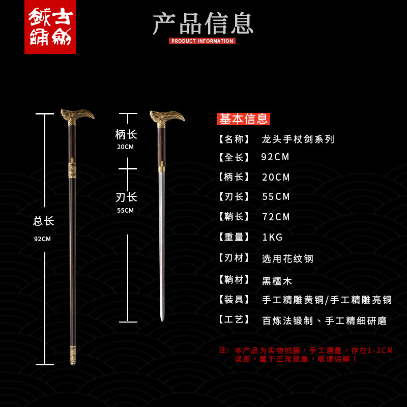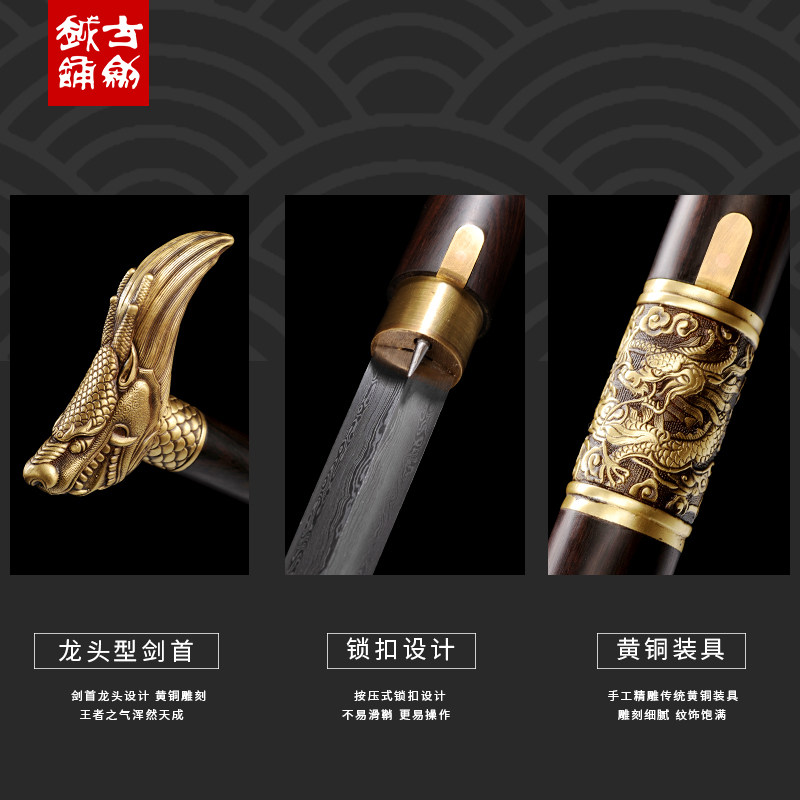 Handmade patterned steel cane sword Longquan ancient Yue Sword paved with swords The sword-proof sword Long version of the sword collection unopened