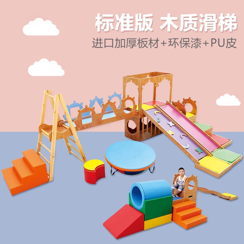Premature Education Center indoor wooden slide children's physical training component of the children's physical training equipment