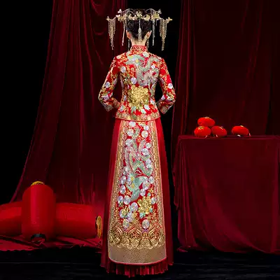 Panjin embroidered bride Xiuhe dress 2021 new Chinese wedding dress dragon and phoenix hanging ancient costume wedding dress toast Xiuhe