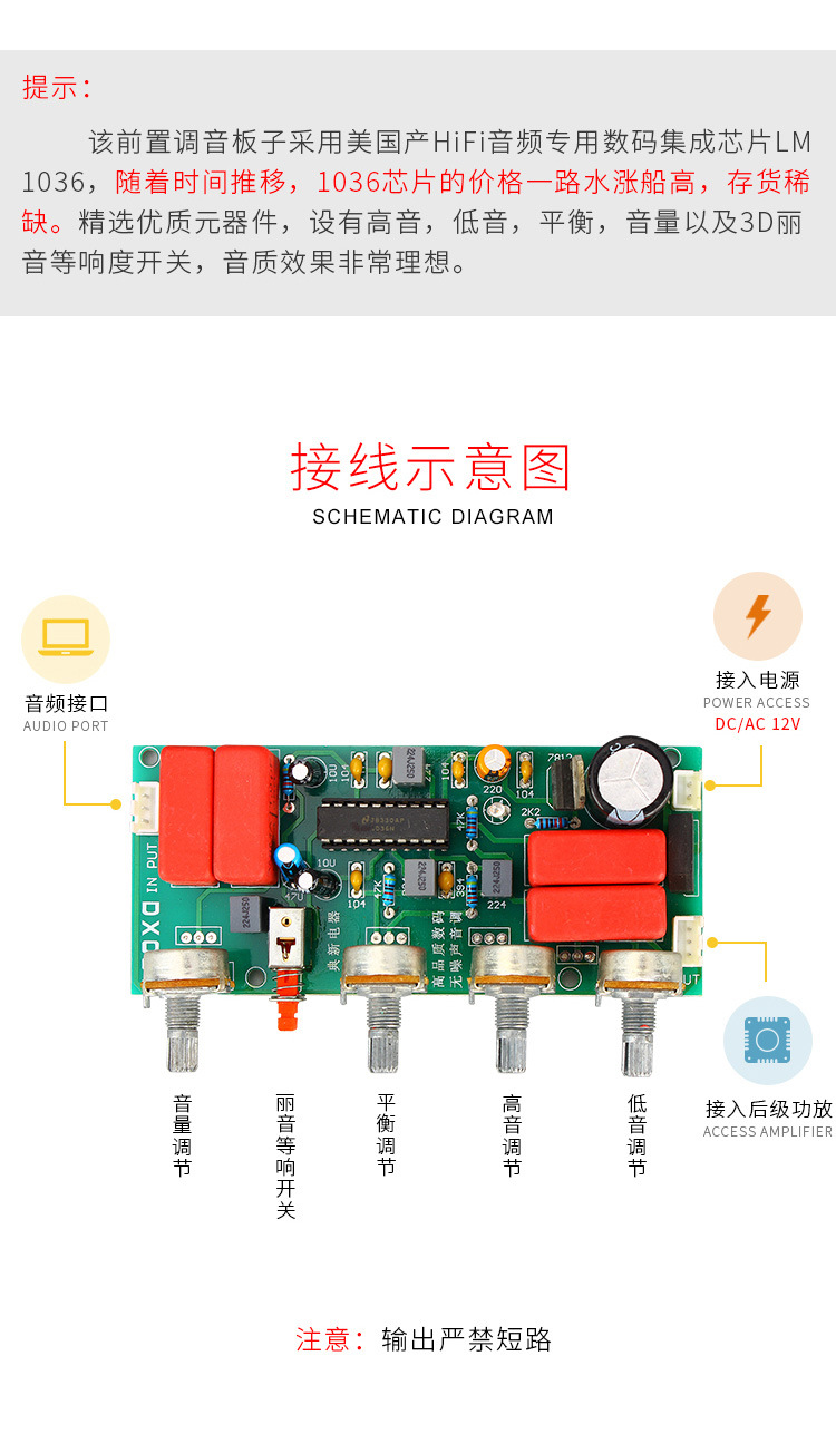 LM1036 Front Level Mixers Tone Board Power Amplifier Digital Front Low Noise High Fidelity HIFI Tuning Board