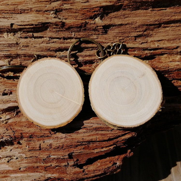 Small wood sheet blank wooden round wooden key buckle metal chain pine wood painting wood sheet DIY pendant custom lettering