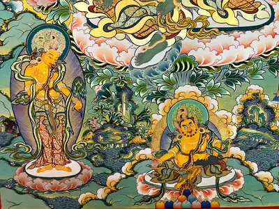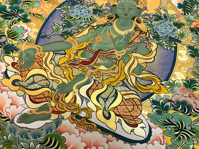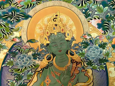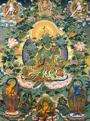 Qinghai Regong pure hand-painted thangka Green Home boutique living room porch decoration painting Bodhisattva Tibetan Buddha statue