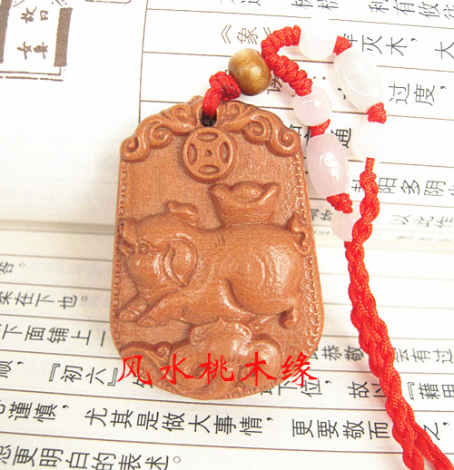 Peach wood zodiac pendant rat cow tiger rabbit dragon snake horse sheep monkey chicken dog pig necklace pendant amulet