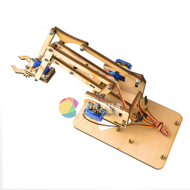 4 degrees of freedom wooden board steering gear robot robot arm sg90 Raspberry Pi paw wooden splicing