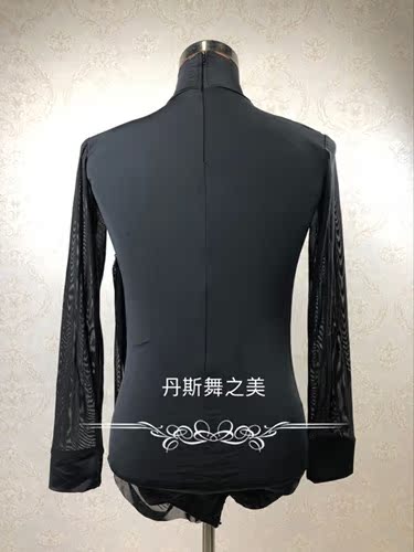 Male Latin Dance Arts College Entrance Examination Competition Exercises Performance Naked clothing Splicing Gauze High Collar Long Sleeve Black Autumn Clothes Body Clothing