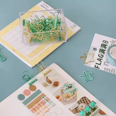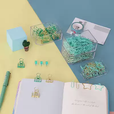 Sea foam green stars 30 imitation gold stars 30 Mixed stars 30 sea foam green clip needle 150 pieces mixed paper clip 150 imitation gold fish tail clip 30 imitation gold tooth clip 12 sea foam green