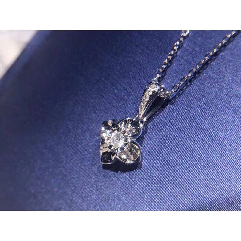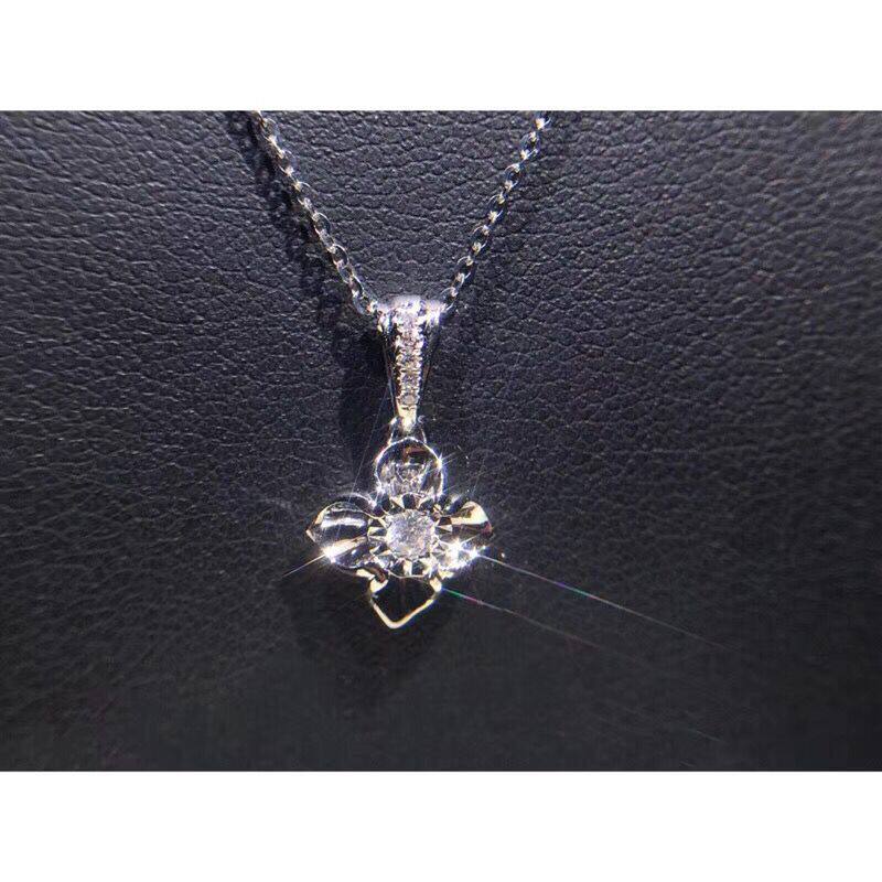 18K Platinum Quadruleaf Grass Diamond Necklace caravan with a pendant pendant matching silver necklace