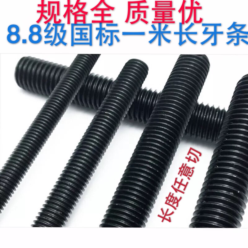 National Standard Tooth Strip 8 8 Grade Black 1 m Full Tooth Thread Screwed Suspended Ceiling Wire Rod M6M8M10M12M14-48