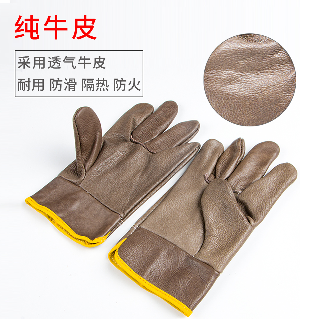 Dark-colored light-colored cowhide labor insurance gloves carrying wear-resistant full cowhide short welding anti-scald high-temperature resistant left gloves for men