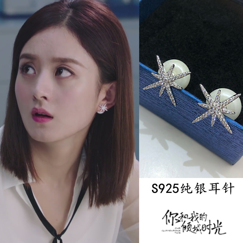Korean Temperament 100 Hitch Six Manga Star Anise Star Ear Pin s925 Silver Pin Snowflake Rice Character Stars Lin Shallow Earrings