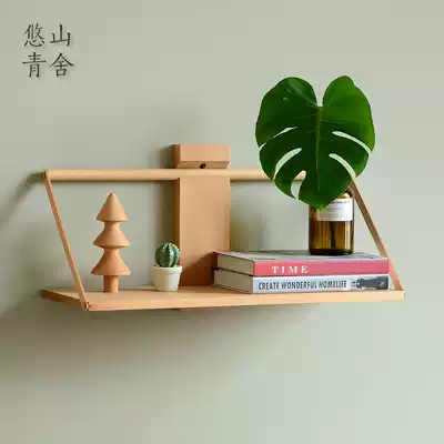 INS Nordic style solid wood wall shelf Decorative small bookshelf Powder room towel rack Kitchen shelf partition