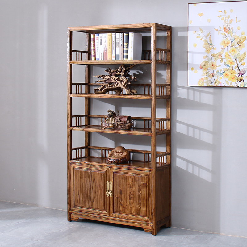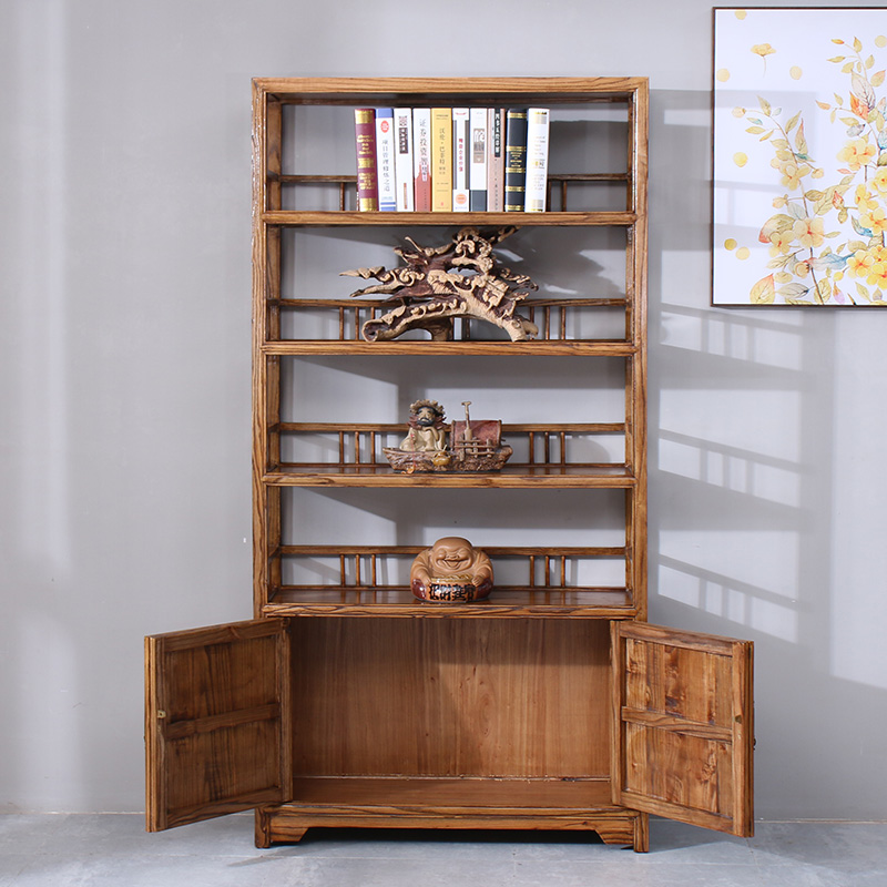Old Elm Wood Bookcase Full Solid Wood 2 Doors Imitation Ancient Landing Furniture Students Chinese Bookcase Log Disposal Tea Racks