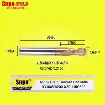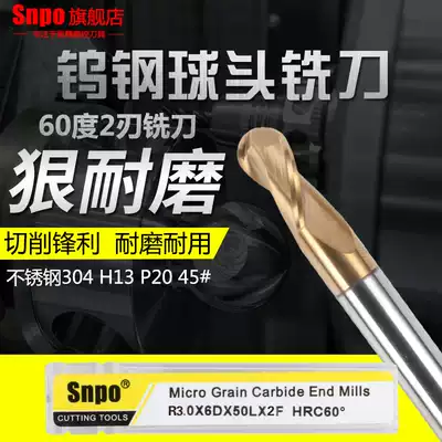 SNPO Tungsten steel milling cutter 60 degree ball cutter Coated ball head Cemented carbide stainless steel R knife ball CNC end milling cutter Carved