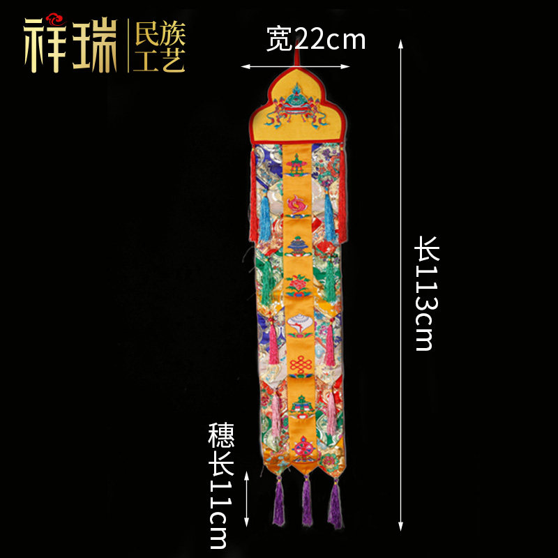 110cm gold cloth hanging banner hand embroidered eight auspicious vertical banner couplet Buddha Hall decoration hanging banner Eight Treasure Buddha Hall a pair