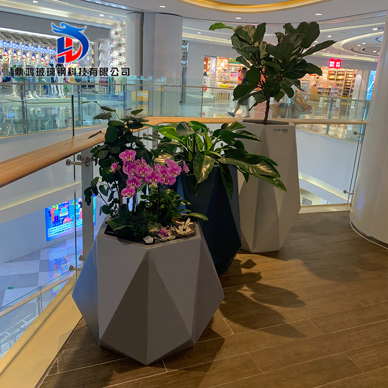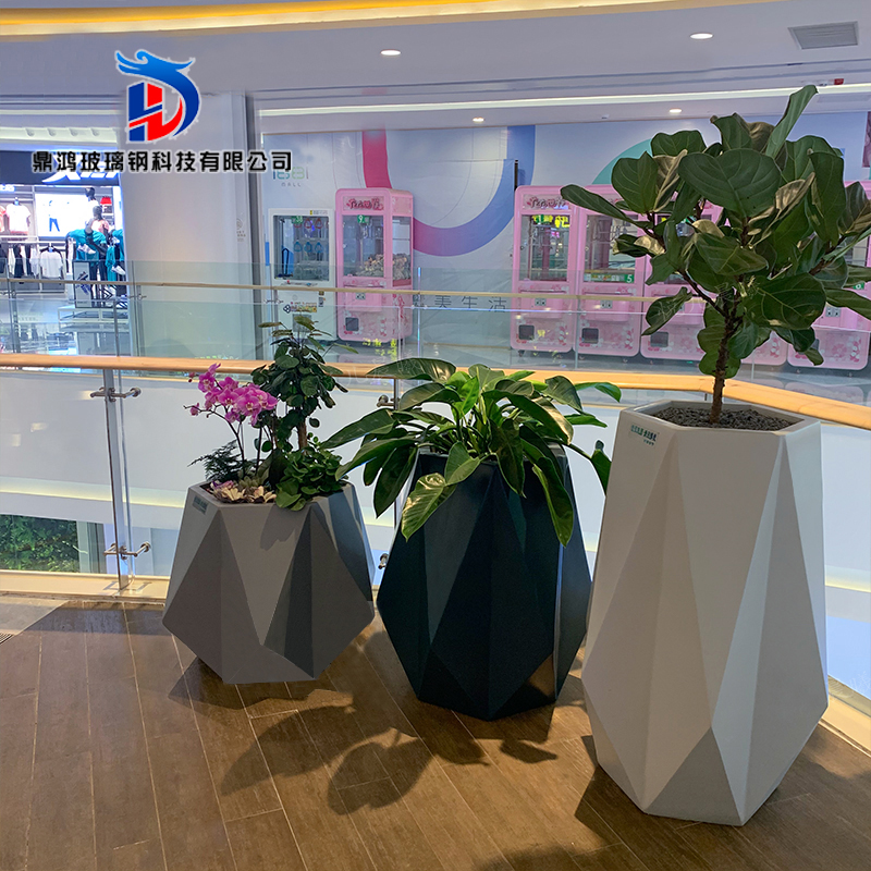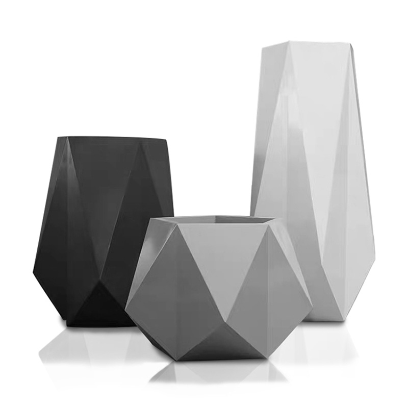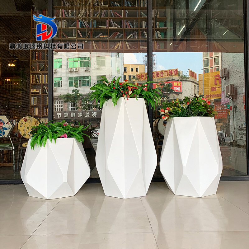 Meichen fiberglass flower pot diamond flower outdoor green plant shopping mall hotel decoration geometric ornaments floor large vase