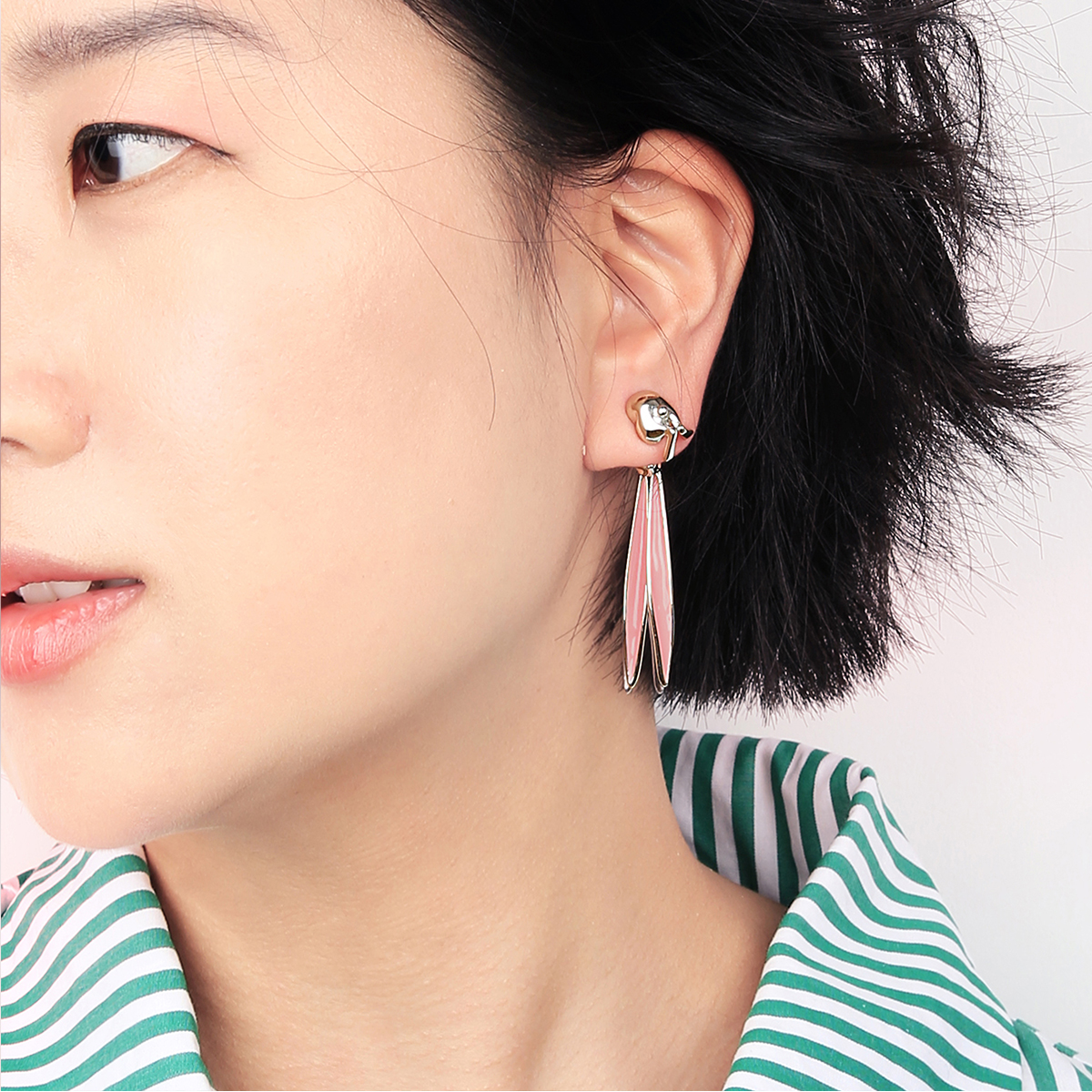 HeyJewel ten mouth II silver gilded enamel Girl Sensation Super Cute Pink Rabbit Earrings Original Spot