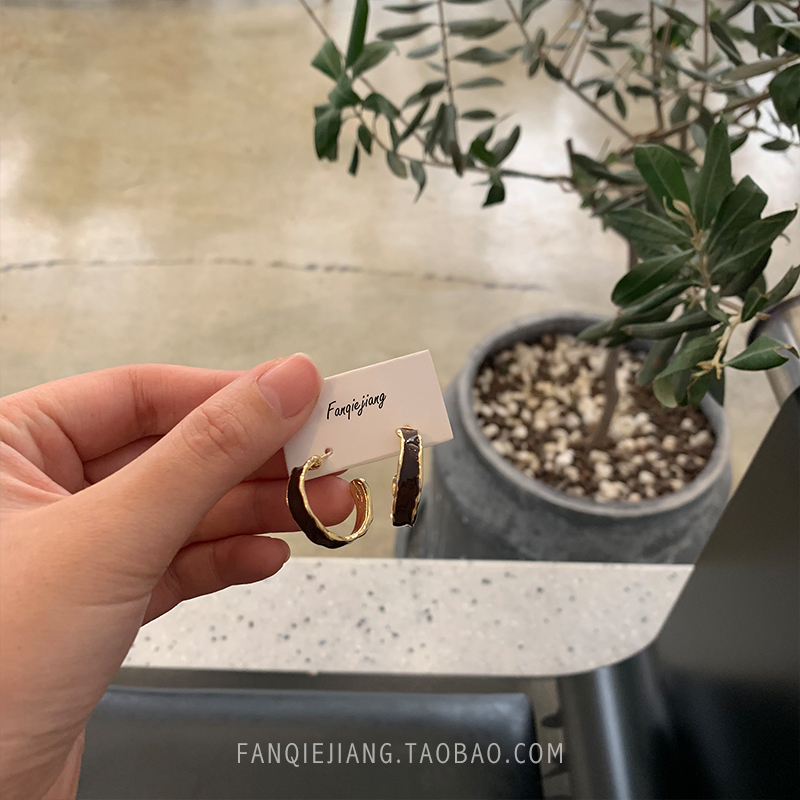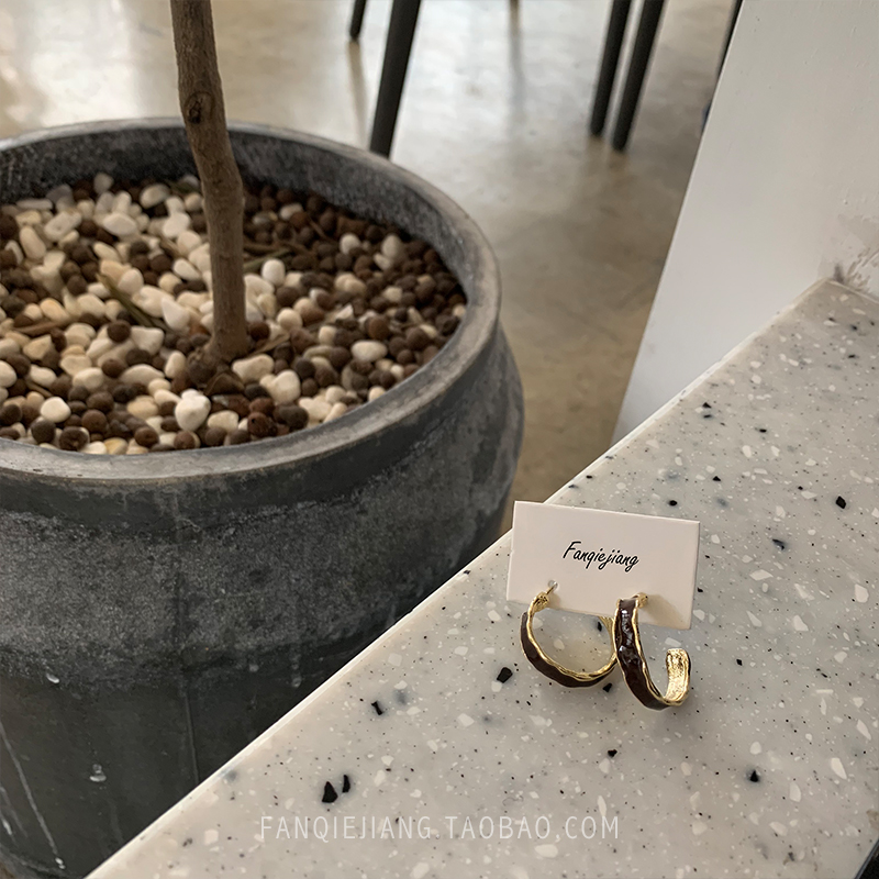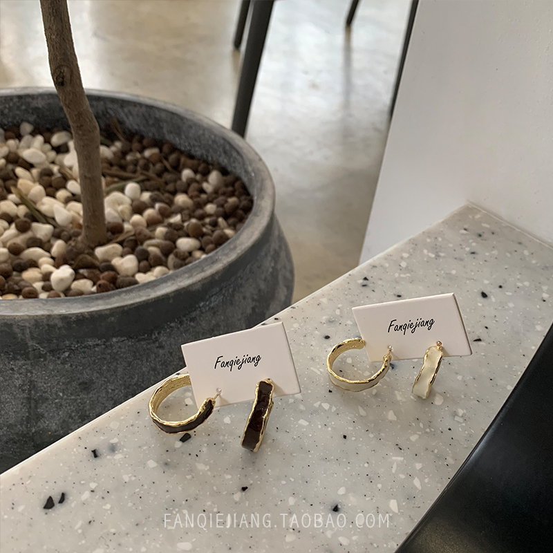 Design Sensation Irregular Side Earrings 2021 New Tide Net Red Retro Harbor Wind Ear Pendant Autumn Winter Money Pure Silver